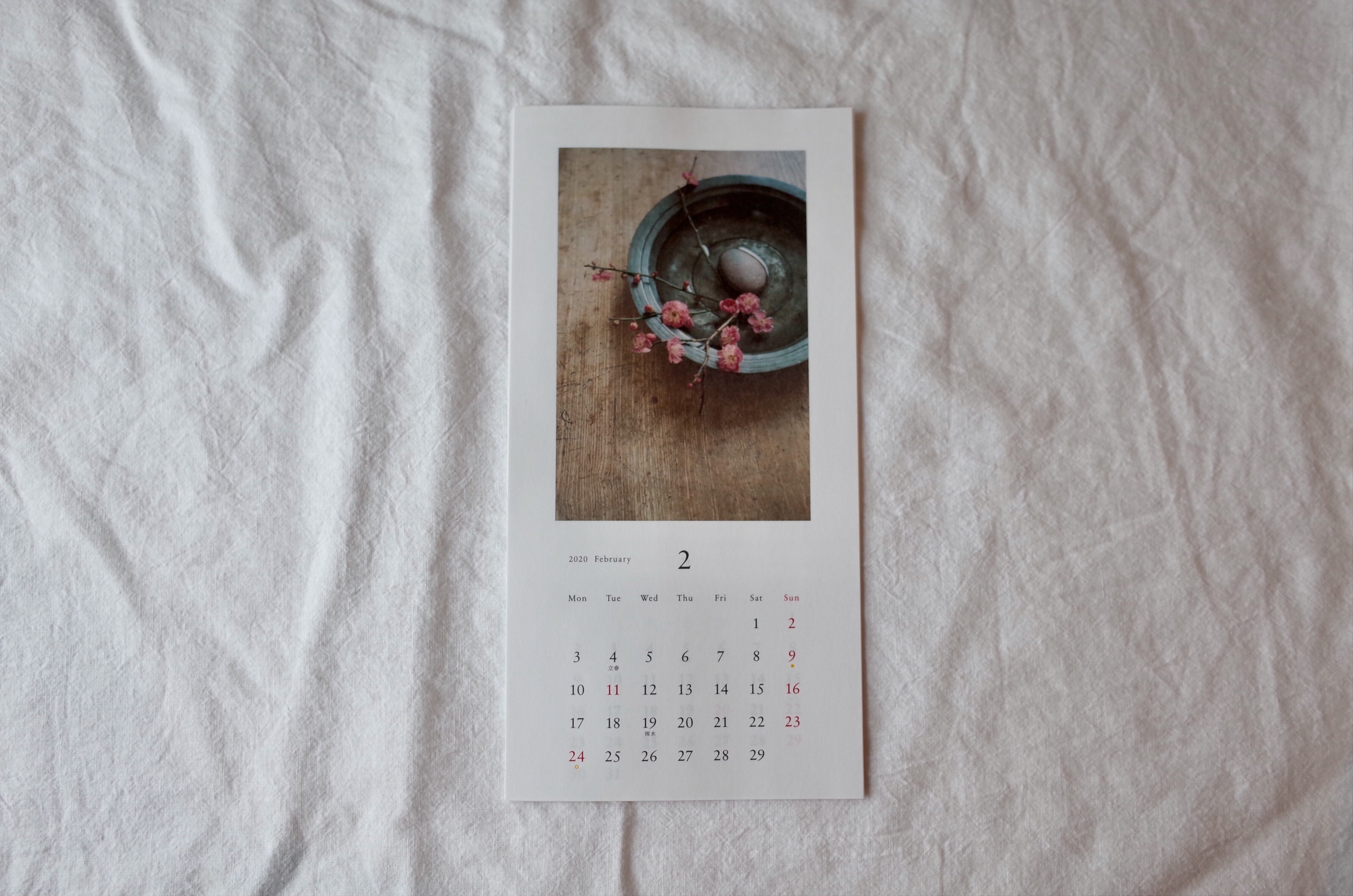 立春から大寒まで。二十四節気と月暦、新月、満月も記載しています。
